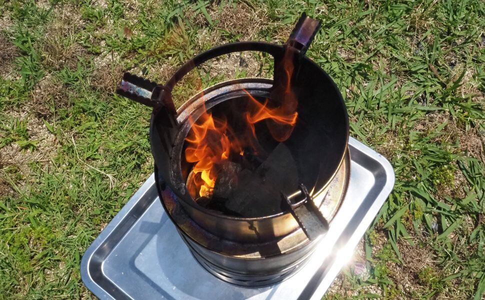 ●枝、葉、薪などを燃料として二次燃焼を実現したキャンプストーブです。