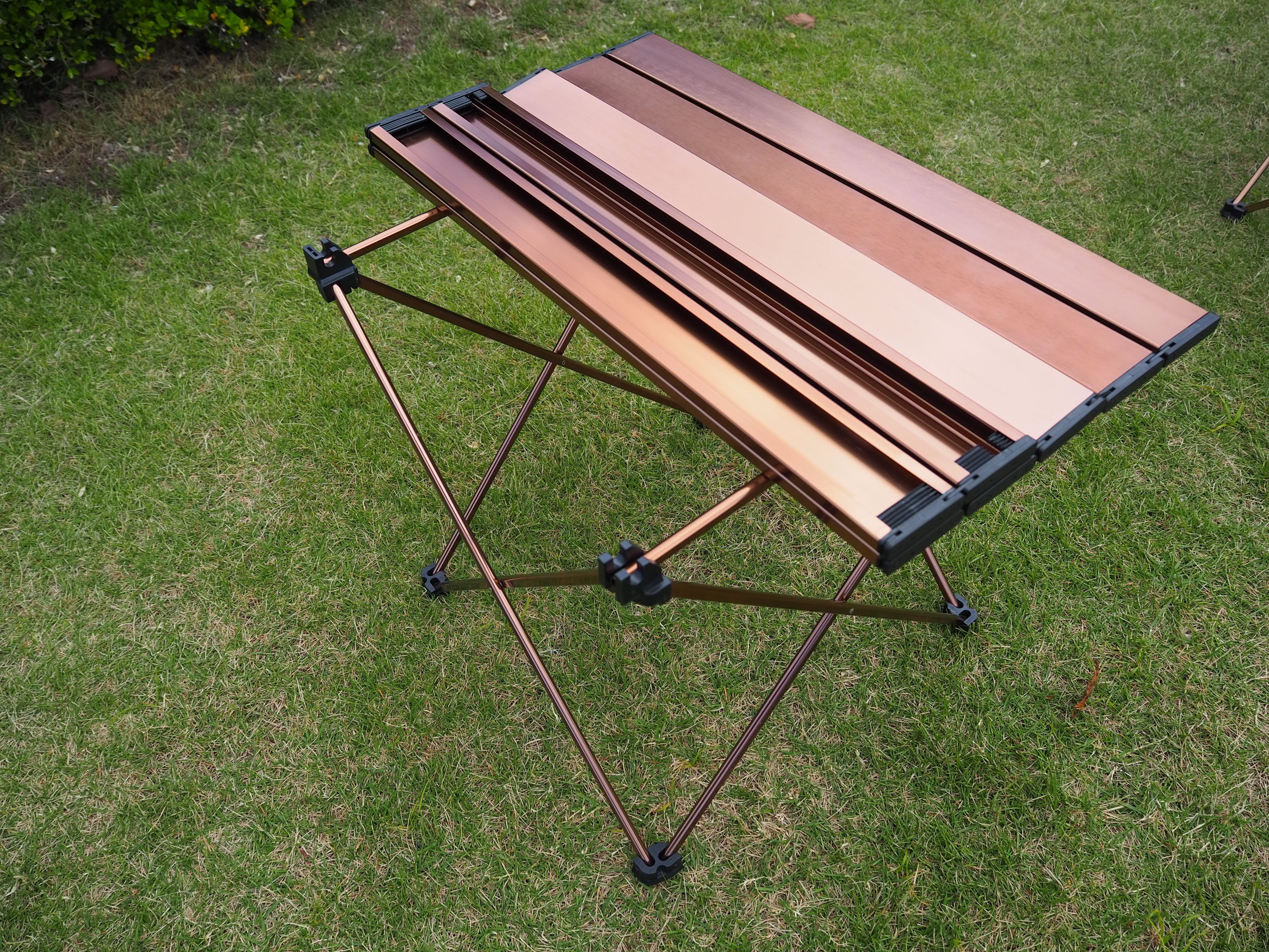 ノーブランド キャンプテーブル アルミロール 1人〜2人用 約55㎝(幅)x40㎝(奥行)x47㎝(高)中型【ブロンズカラー】