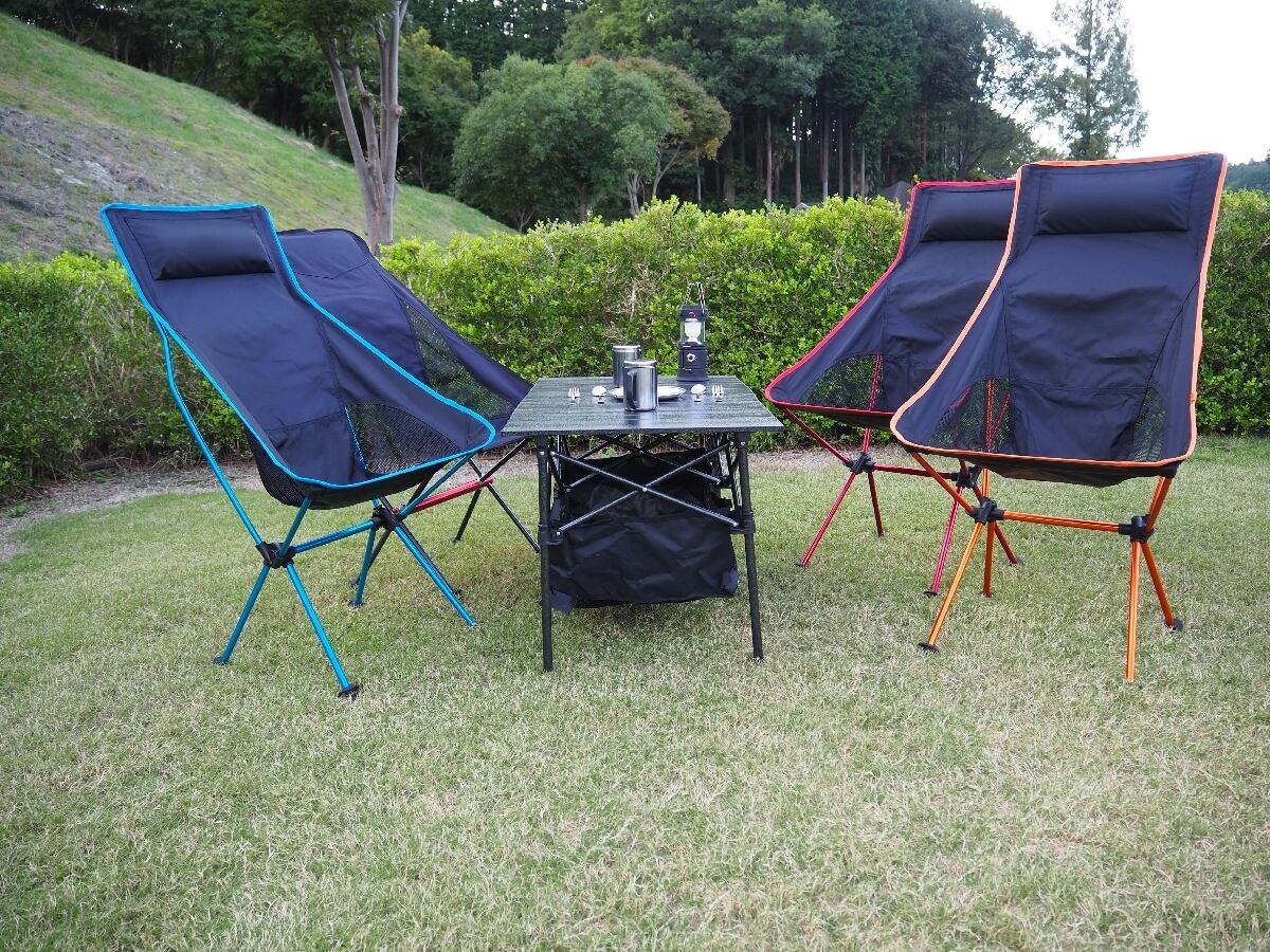 ●頭までしっかりと支えてくれるハイバックチェアながら、重量約1.2㎏と超軽量なので持ち運びもスムーズにできます。