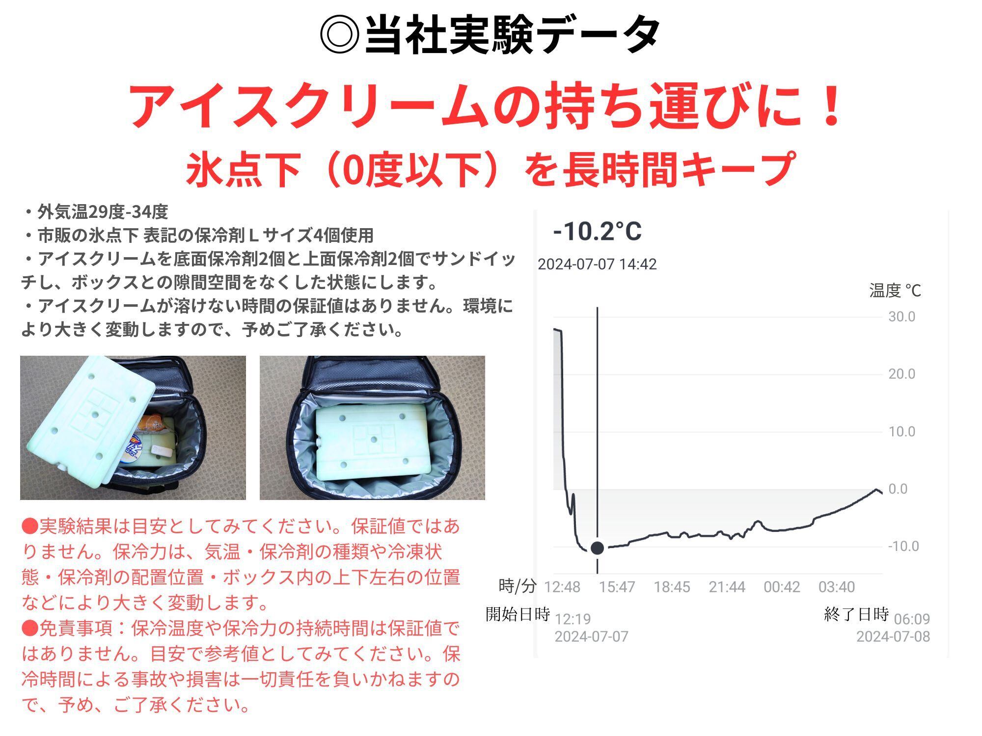 3.ボックス最下部中央の温度0度以下を長時間キープ!(-16℃/氷点下の表記がある保冷剤Lサイズを3個使用した場合の当社実験データによる*保証値ではありません)