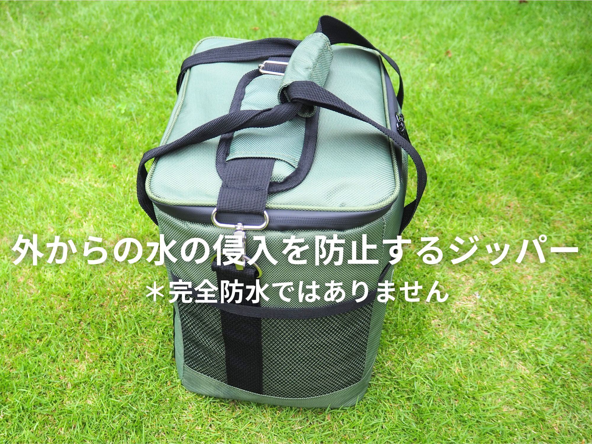 4.内部は水漏れしない防水仕様!内部で発生した水は表側に漏れません。(ファスナー部分を除く)*氷や水をボックス内に直接入れると、ボックスが傾いたり、倒れたとき、持ち運び中の振動でファスナーから水が漏れます。また、底面には断熱材が入っていないため底面外側が冷たくなることがあります。ボックス底面と地面との温度差が大きい場合、ボックスとの接地面が結露で濡れることがあります。高温になる車の中に放置する場合はご注意ください。