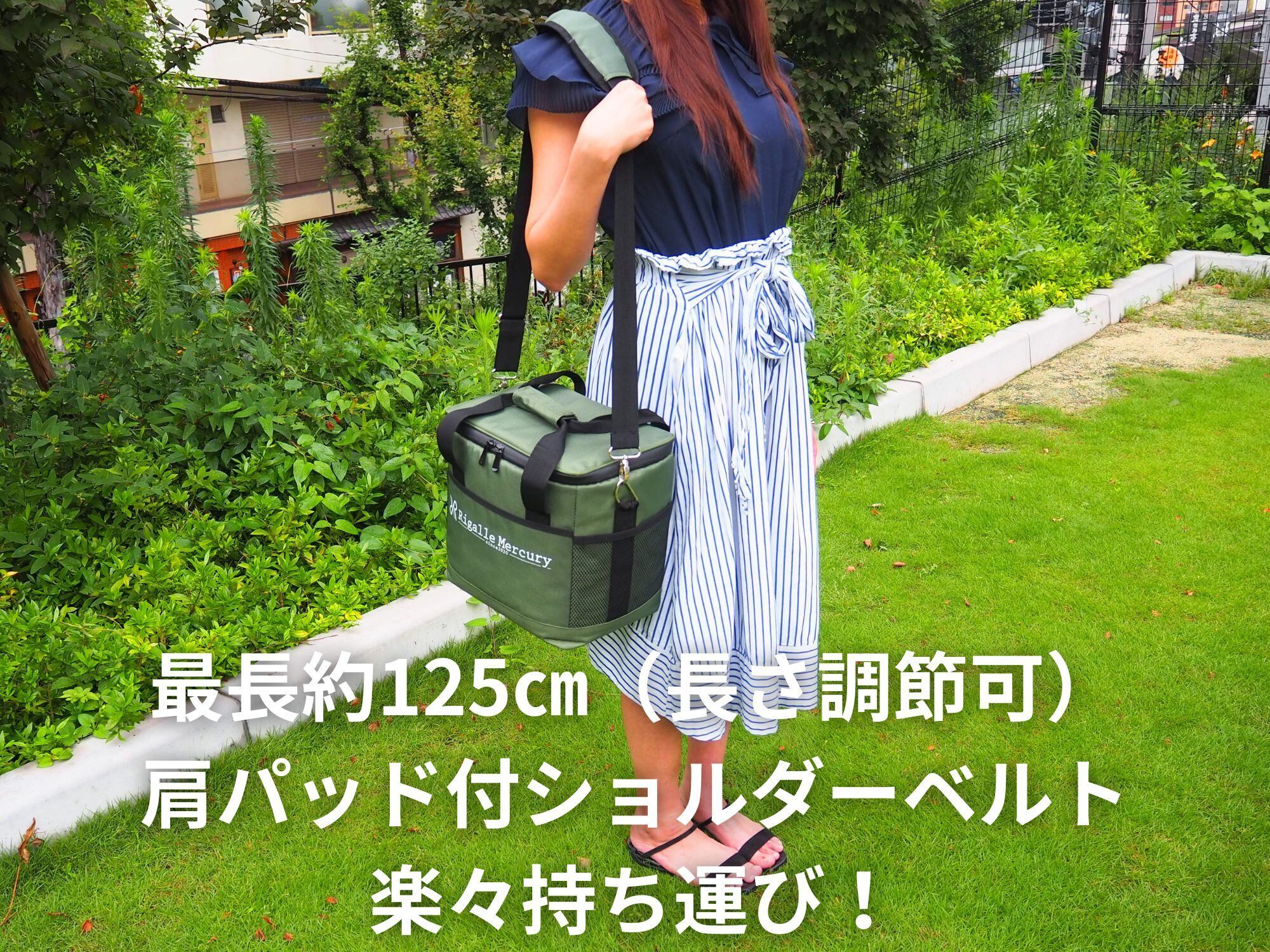 5.ゴルフカートにおすすめのジャストサイズ。ゴルフ・釣り・子どものスポーツ観戦・部活・アイスクリームの持ち運び(-16℃保冷剤Lサイズ4個使用時)におすすめです。また、厚さ15㎜のクッション材が入っているので、ランタンやポータブル電源などの精密機器の持ち運びにもおすすめです。