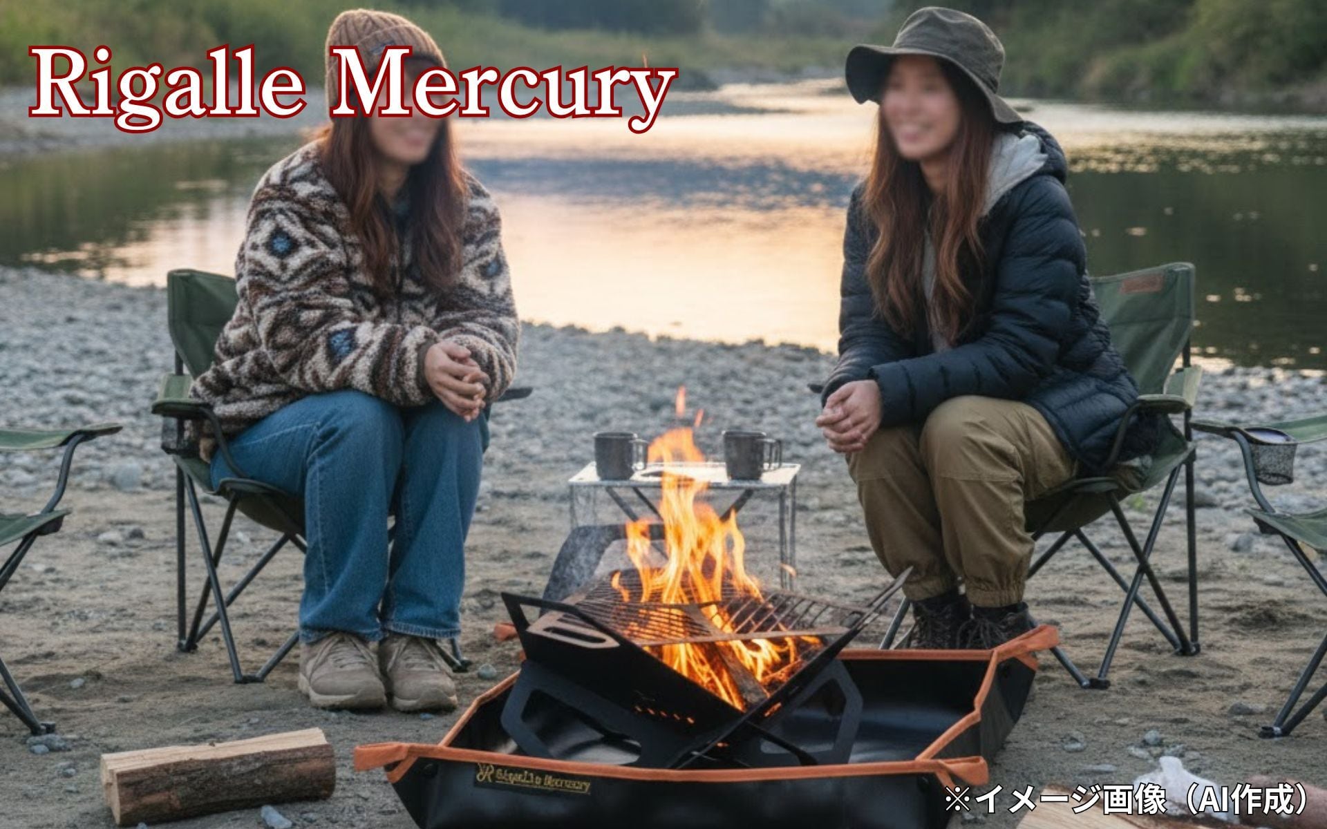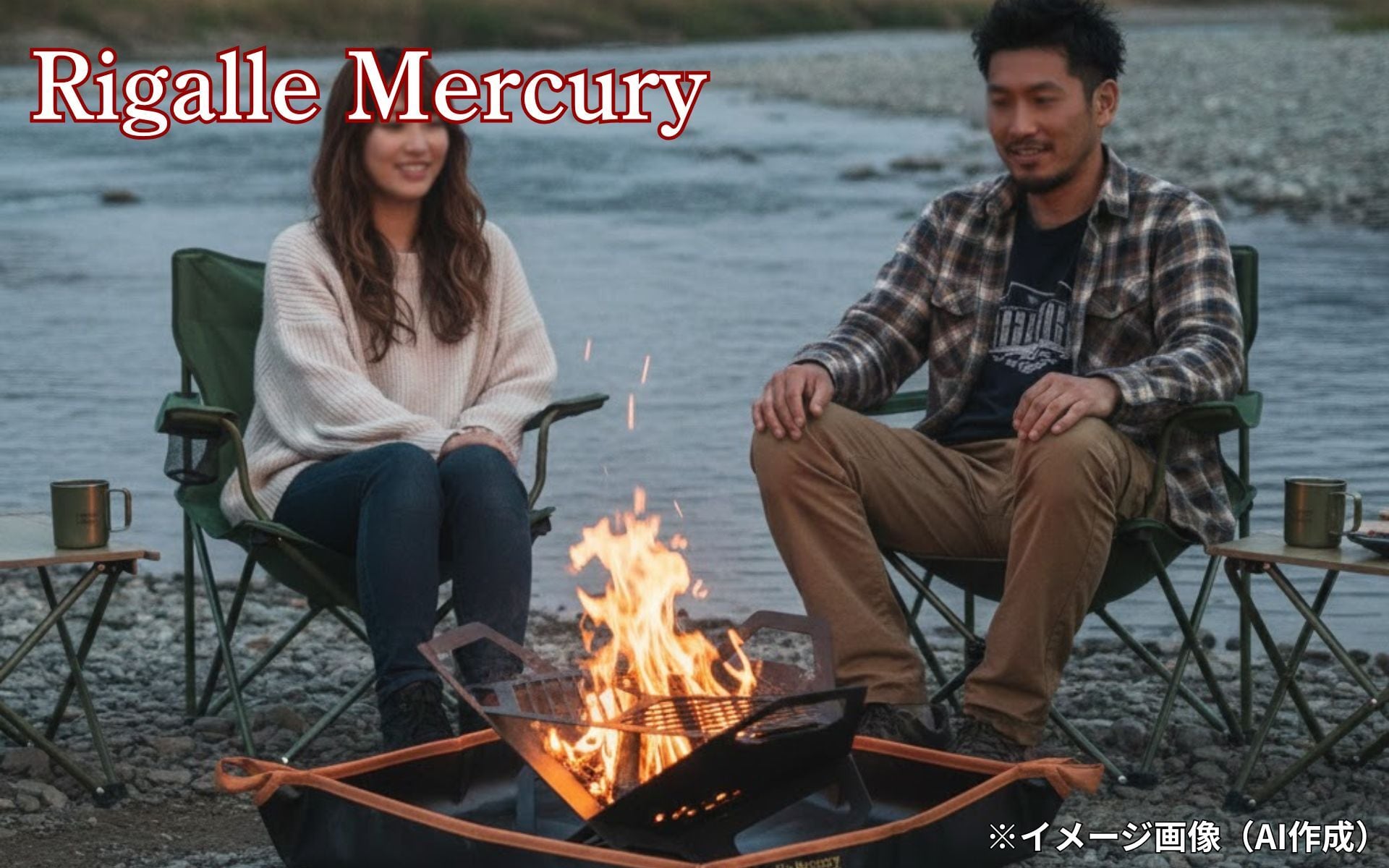 新品販売/Rigalle Mercury 低くてかっこいいフォルム 焚き火台 ソロ 焚き火グリル&焚き火シート セット リガファイア 鋼鉄 ブラック 1〜4人用